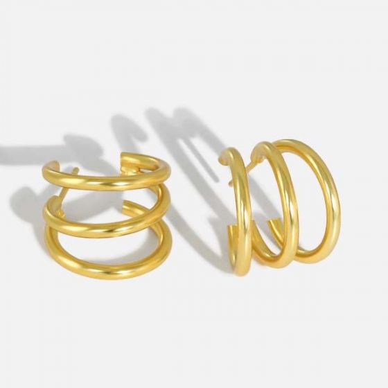 Our Maria illusion Triple Hoop Earrings give you the look of wearing multiple earrings without multiple piercings! Simple stud post to secure. Simple and Beautiful everyday pair of earrings.