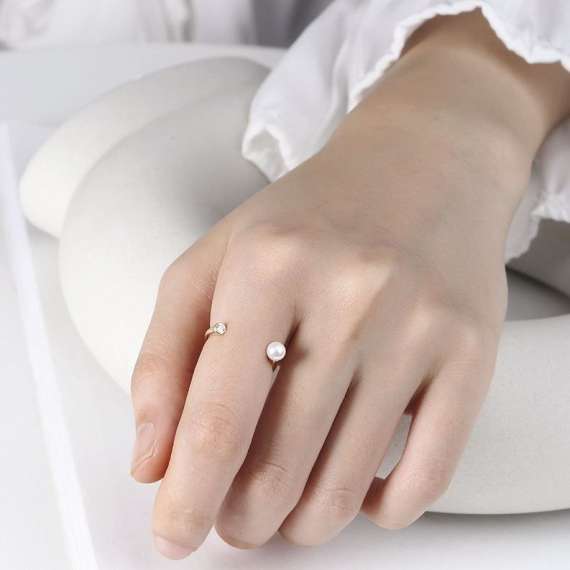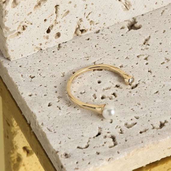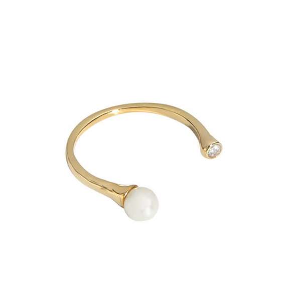 Italian for ‘Pearl’ this gorgeous gold plated adjustable ring with a beautiful pearl and Cubic Zirconia crystal is one of our favourites, comfortable to wear minimalistic look. Can also be worn as a midi ring.