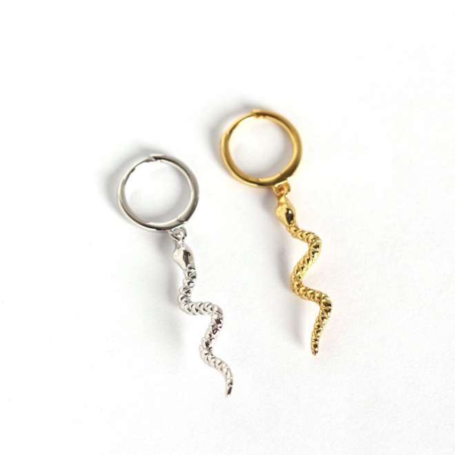 Veronica Sterling Silver Dangle Snake Huggie Earring – Single earring